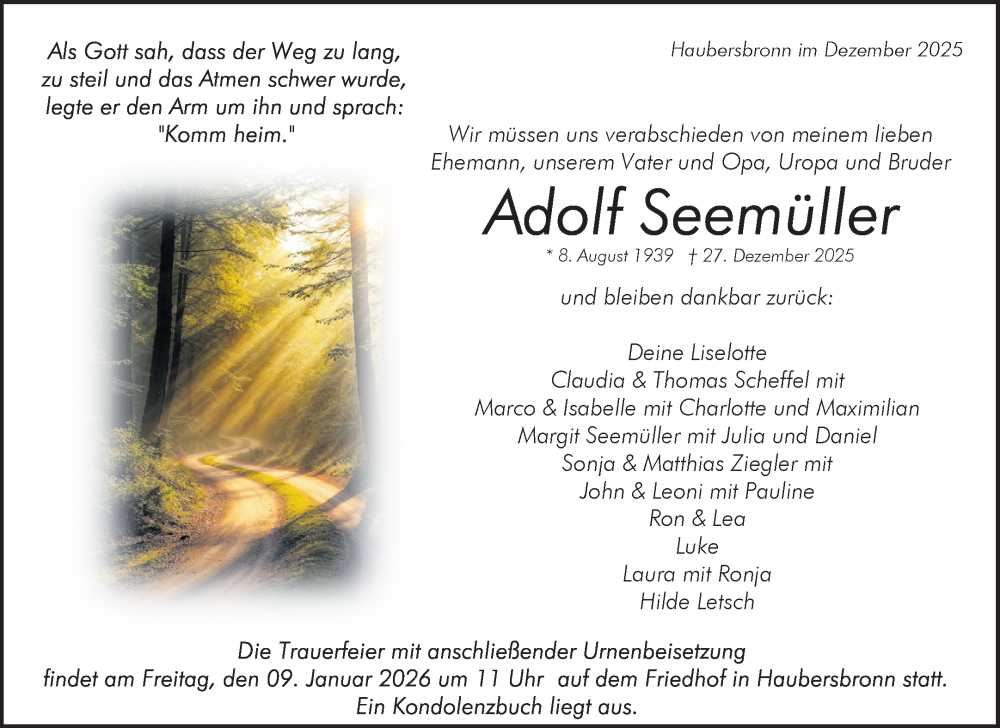 Hier finden Sie alle Traueranzeigen aus der Zeitung, die bisher für Adolf Seemüller erschienen sind. Weitere Traueranzeigen, die in der Zeitung erscheinen, werden hier ebenfalls aufgelistet