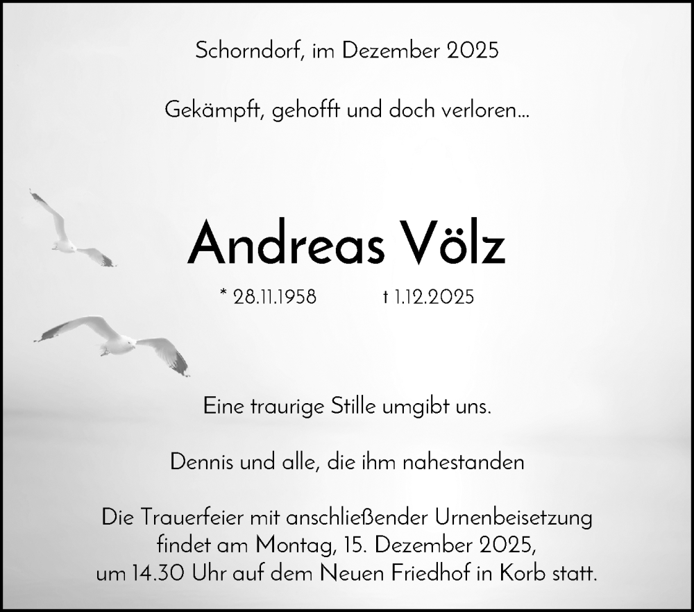 Hier finden Sie alle Traueranzeigen aus der Zeitung, die bisher für Andreas Völz erschienen sind. Weitere Traueranzeigen, die in der Zeitung erscheinen, werden hier ebenfalls aufgelistet