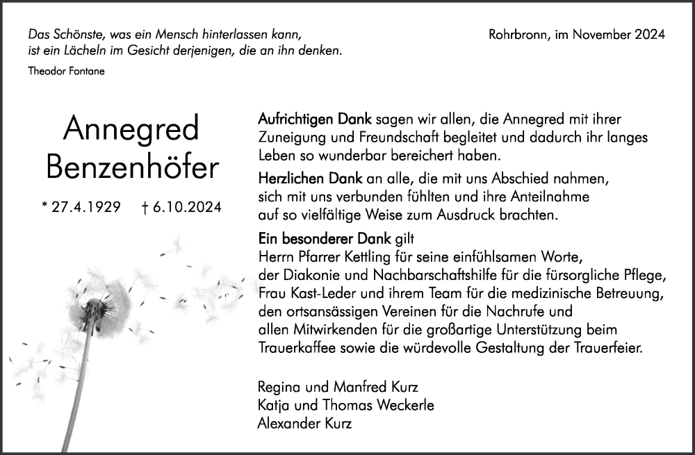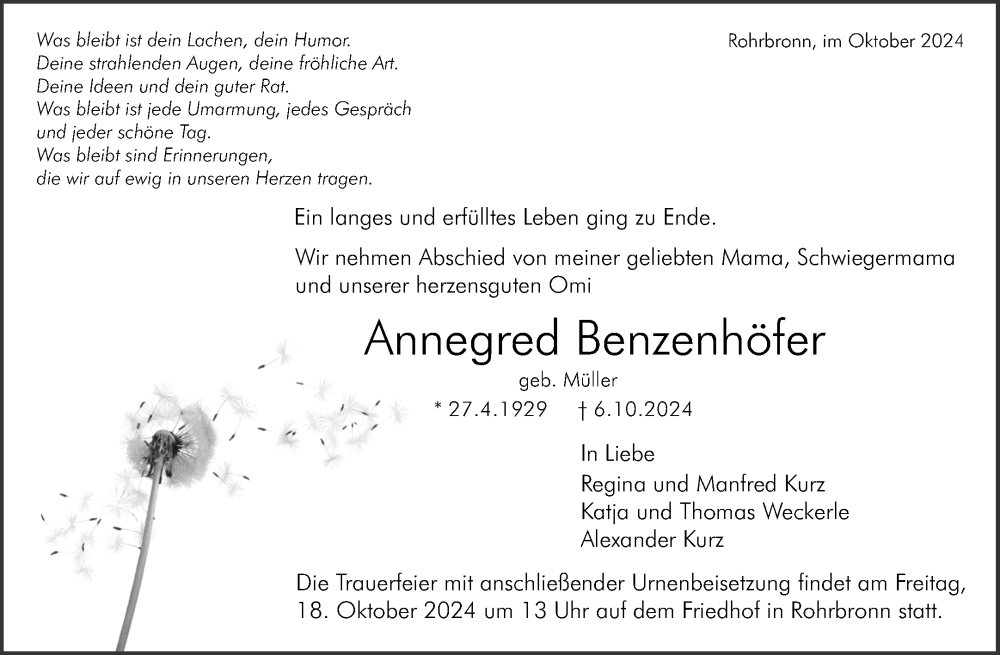 Hier finden Sie alle Traueranzeigen aus der Zeitung, die bisher für Annegred Benzenhöfer erschienen sind. Weitere Traueranzeigen, die in der Zeitung erscheinen, werden hier ebenfalls aufgelistet