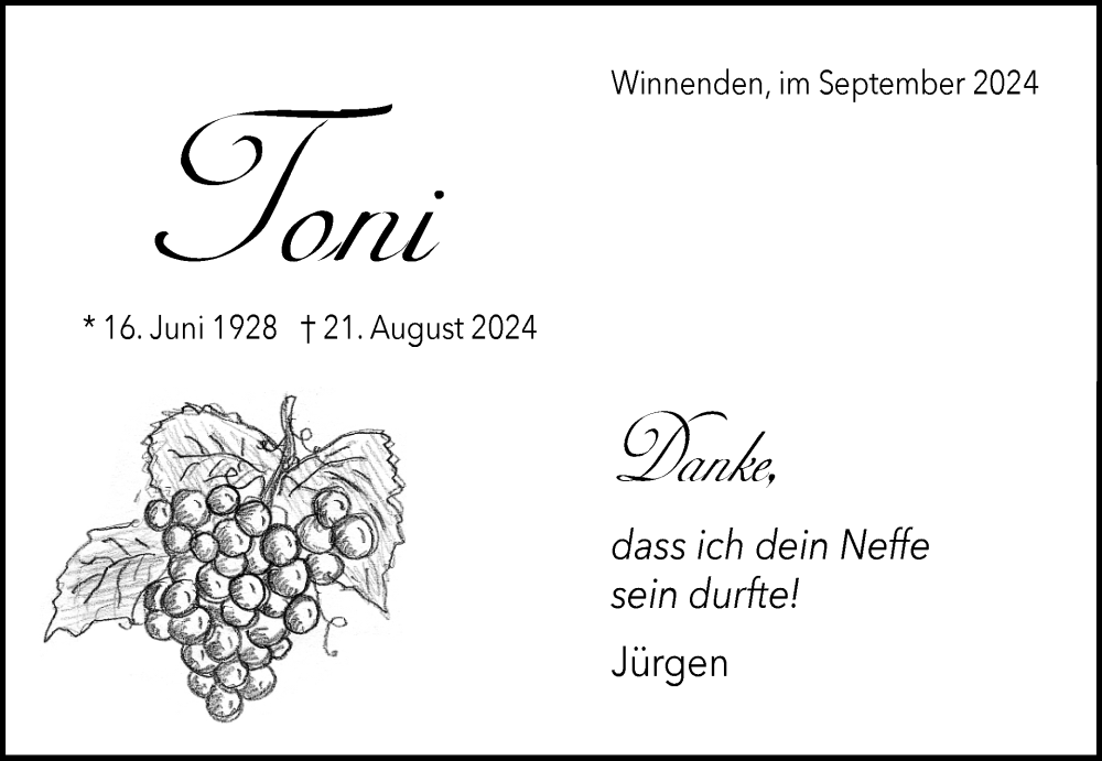 Hier finden Sie alle Traueranzeigen aus der Zeitung, die bisher für Anton Hippich erschienen sind. Weitere Traueranzeigen, die in der Zeitung erscheinen, werden hier ebenfalls aufgelistet
