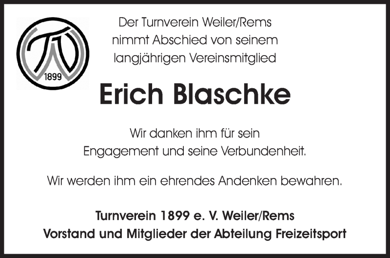 Hier finden Sie alle Traueranzeigen aus der Zeitung, die bisher für Erich Blaschke erschienen sind. Weitere Traueranzeigen, die in der Zeitung erscheinen, werden hier ebenfalls aufgelistet