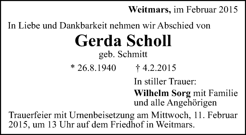Hier finden Sie alle Traueranzeigen aus der Zeitung, die bisher für Gerda Scholl erschienen sind. Weitere Traueranzeigen, die in der Zeitung erscheinen, werden hier ebenfalls aufgelistet