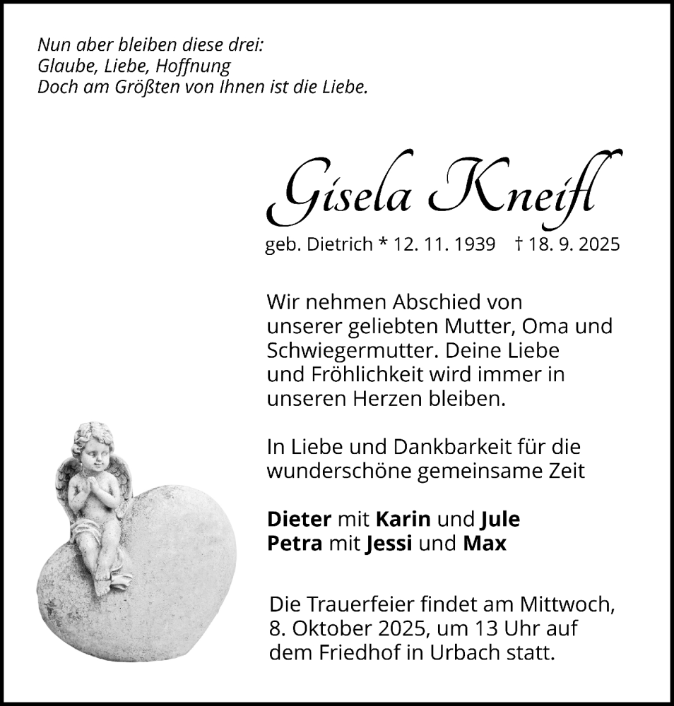 Hier finden Sie alle Traueranzeigen aus der Zeitung, die bisher für Gisela Kneifl erschienen sind. Weitere Traueranzeigen, die in der Zeitung erscheinen, werden hier ebenfalls aufgelistet