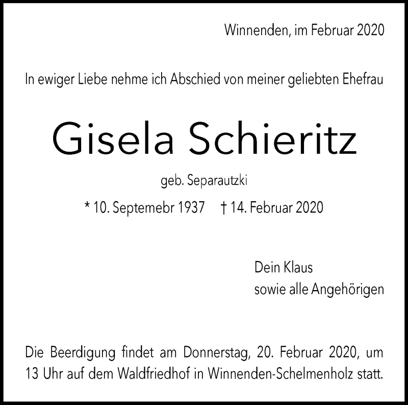 Hier finden Sie alle Traueranzeigen aus der Zeitung, die bisher für Gisela Schieritz erschienen sind. Weitere Traueranzeigen, die in der Zeitung erscheinen, werden hier ebenfalls aufgelistet