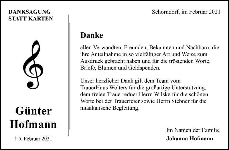 Hier finden Sie alle Traueranzeigen aus der Zeitung, die bisher für Günter Hofmann erschienen sind. Weitere Traueranzeigen, die in der Zeitung erscheinen, werden hier ebenfalls aufgelistet