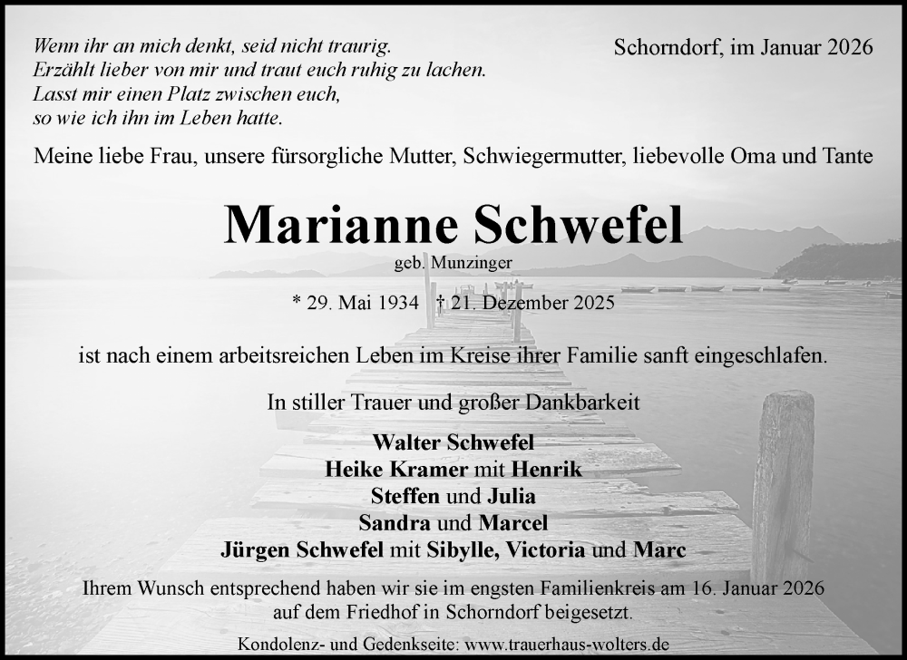 Hier finden Sie alle Traueranzeigen aus der Zeitung, die bisher für Marianne Schwefel erschienen sind. Weitere Traueranzeigen, die in der Zeitung erscheinen, werden hier ebenfalls aufgelistet