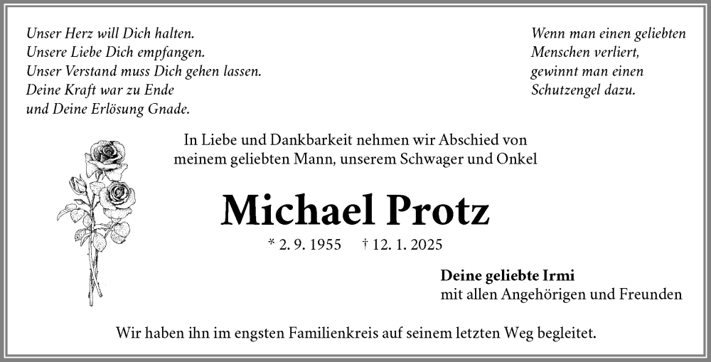 Hier finden Sie alle Traueranzeigen aus der Zeitung, die bisher für Michael Protz erschienen sind. Weitere Traueranzeigen, die in der Zeitung erscheinen, werden hier ebenfalls aufgelistet