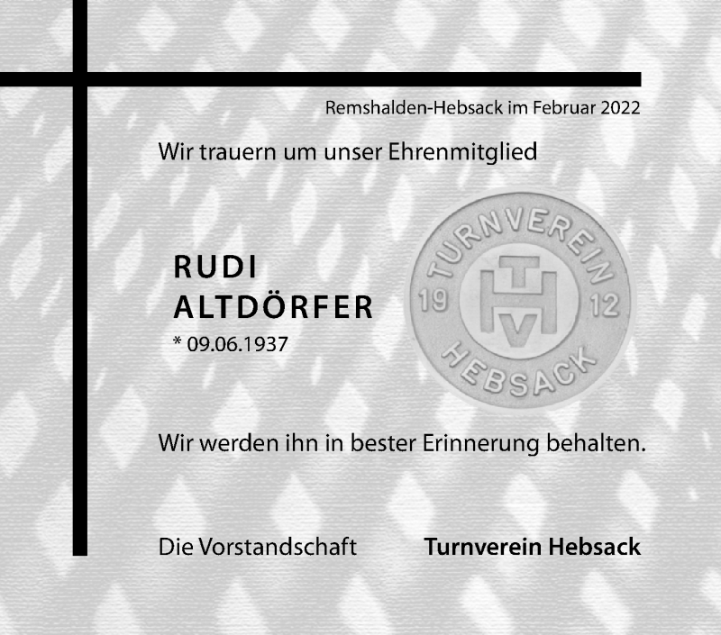Hier finden Sie alle Traueranzeigen aus der Zeitung, die bisher für Rudi Altdörfer erschienen sind. Weitere Traueranzeigen, die in der Zeitung erscheinen, werden hier ebenfalls aufgelistet