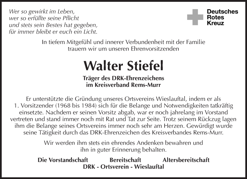 Hier finden Sie alle Traueranzeigen aus der Zeitung, die bisher für Walter Stiefel erschienen sind. Weitere Traueranzeigen, die in der Zeitung erscheinen, werden hier ebenfalls aufgelistet
