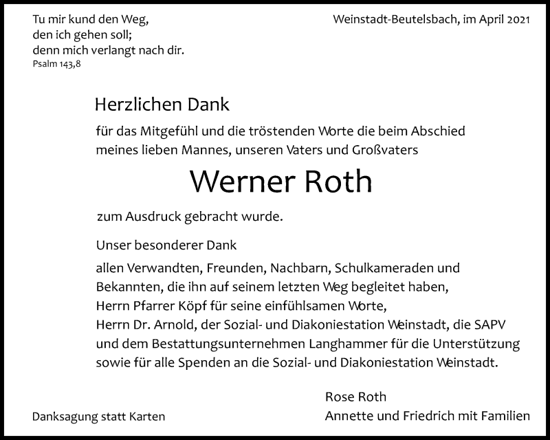 Hier finden Sie alle Traueranzeigen aus der Zeitung, die bisher für Werner Roth erschienen sind. Weitere Traueranzeigen, die in der Zeitung erscheinen, werden hier ebenfalls aufgelistet