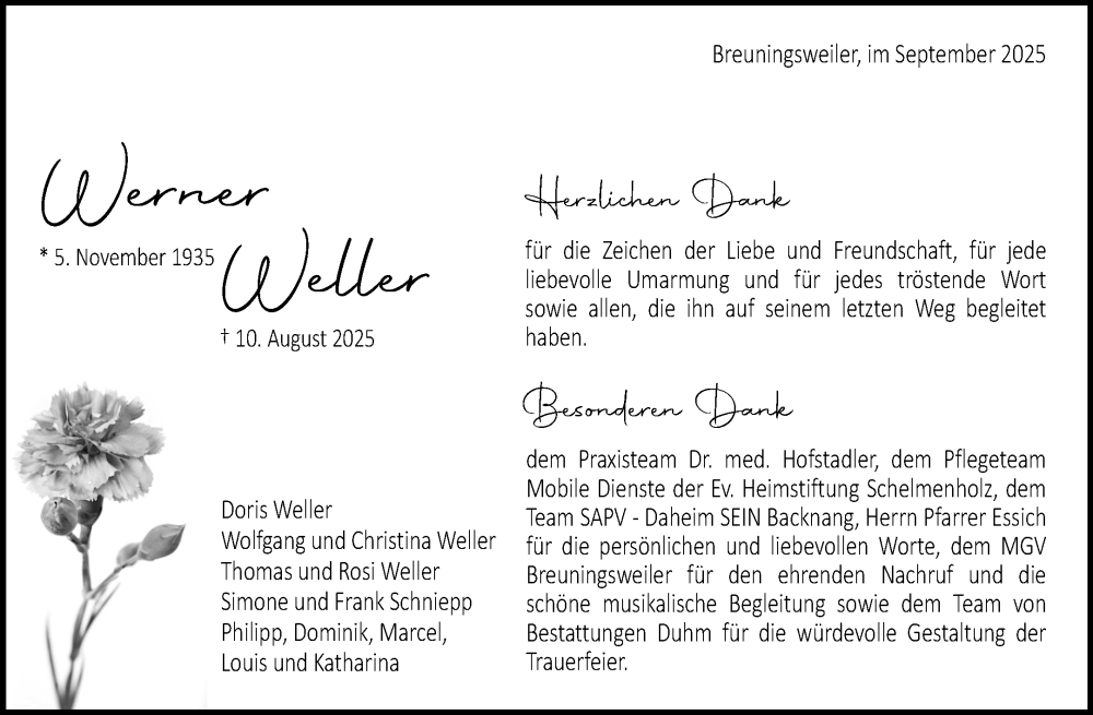 Hier finden Sie alle Traueranzeigen aus der Zeitung, die bisher für Werner Weller erschienen sind. Weitere Traueranzeigen, die in der Zeitung erscheinen, werden hier ebenfalls aufgelistet